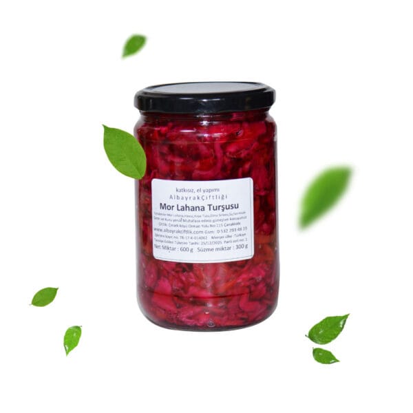 İçindekiler: Mor lahana, havuç, kaya tuzu, elma sirkesi, su, sarımsak.